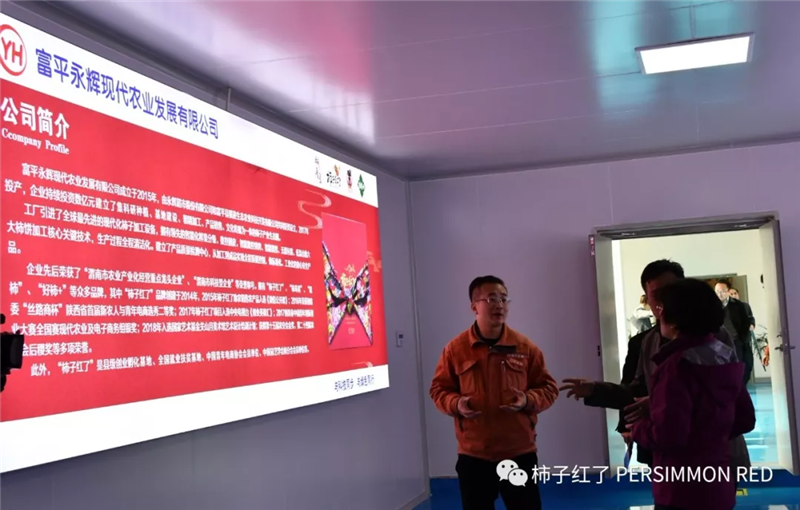 剛到廠門口,就受到了富平永輝全體工作人員的熱烈歡迎。黃立紅一行興致勃勃地走進(jìn)廠區(qū),聽取專業(yè)人員的講解和柿子產(chǎn)品的介紹、并品嘗了公司旗下的“柿子紅了”“柿餅+核桃”等產(chǎn)品,嘖嘖稱贊味道好極了。