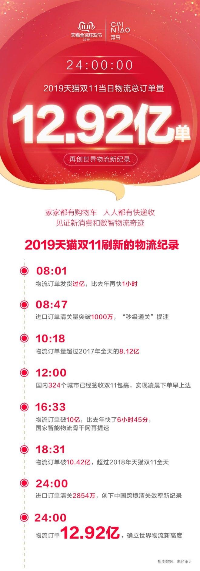 12.92億!11月11日24點(diǎn),天貓雙11物流訂單量定格,數(shù)智物流新紀(jì)錄誕生。