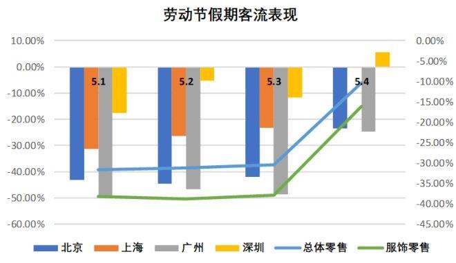 與去年5月相比,總體客流回歸了80%左右,降幅比4月同比收窄了約10個百分點,5月零售市場活力有所增強(qiáng)。