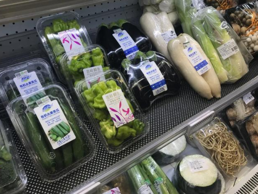 超市內(nèi)售賣的生鮮商品均為包裝好的成品,沒有散稱蔬菜,且都是小分量包裝。超市內(nèi)隨處可見“買貴包賠”的宣傳海報(bào)。依賴京東自有的供應(yīng)鏈系統(tǒng),超市內(nèi)標(biāo)注有“七鮮價(jià)”標(biāo)簽的商品價(jià)格可保證低于同城同類超市,并向顧客承諾買貴包賠。